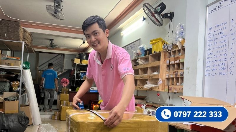 Bước 2: Gom Hàng & Xử Lý: Hàng hóa được gửi về kho hoặc nhân viên đến lấy tận nơi (Pick-up). Chúng tôi tiến hành kiểm tra, phân loại, đóng gói chuẩn quy cách, cân đo lại trọng lượng thực tế/thể tích và chốt cước phí.