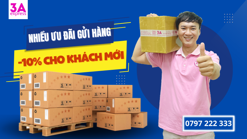 Giảm ngay 10% cước phí cho khách hàng mới trải nghiệm dịch vụ. Ngoài ra, 3A Express liên tục có các chương trình khuyến mãi theo mùa và ưu đãi đặc biệt cho đối tác gửi hàng thường xuyên.